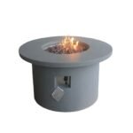 • Design: Contemporary, round, and minimalist design with a smooth, gray concrete finish. The design is often referred to as a “fire bowl” or “fire table.”